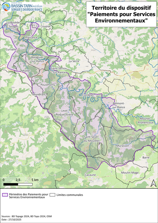 Cela concerne donc tout ou partie des communes suivantes : Balaguier-sur-Rance, Barre, Belmont-sur-Rance, Combret, Coupiac, Curvalle, La Bastide-Solages, La Serre, Lacaune, Laval-Roquecezière, Miolles, Montfranc, Moulin-Mage, Mounes-Prohencoux, Murasson, Plaisance, Pousthomy, Saint-Sernin-sur-Rance et Saint-Sever-du-Moustier.